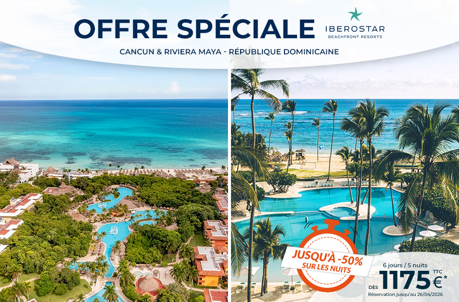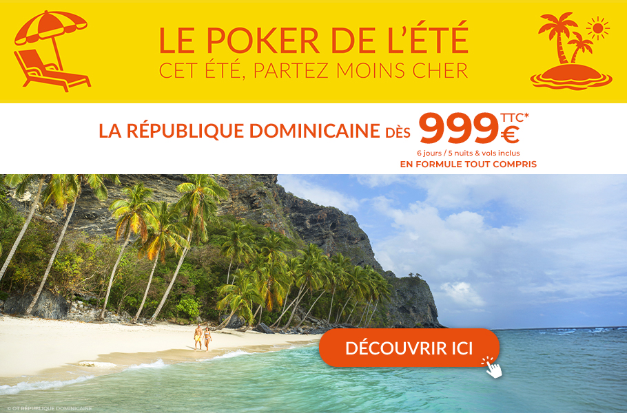 Tahiti & ses îles dans le Pacifique. La Guadeloupe, Martinique, République Dominicaine et St Barth, le Mexique avec Cancun & la Riviera Maya dans les Caraïbes, la Jamaïque et Sainte-Lucie. L’Ile Maurice, la Réunion, les Seychelles, les Maldives, le Sri Lanka, Dubaï dans l'Océan Indien, sans oublier une halte à Zanzibar. Les Iles tropicales en promo et petits prix poker ou en combinés de plusieurs Iles Réunion/Ile Maurice ... Découvrez les plus grandes chaînes hôtelières dont Sandals, Palladium, Bahia Principe...